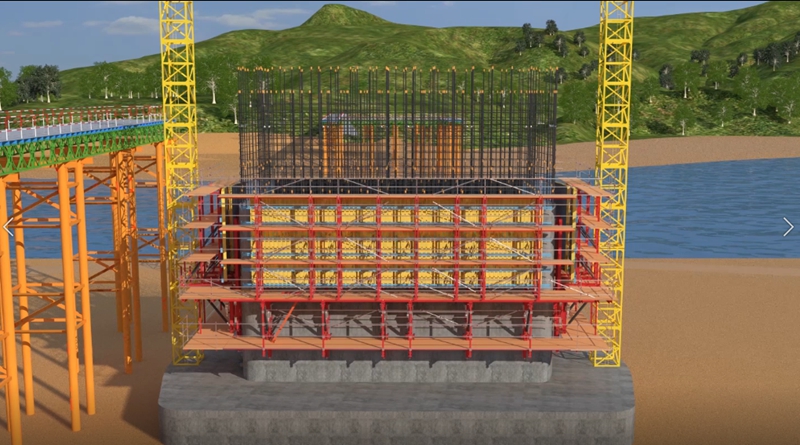 在該橋建設(shè)中,基礎(chǔ)建模、場站布設(shè)及選址優(yōu)化、輔助重難點施工方案編制、可視化交底等基礎(chǔ)應(yīng)用工作已經(jīng)紛紛落地。根據(jù)工程特點,廣西路建集團技術(shù)團隊還開展了復(fù)雜位置地質(zhì)模擬輔助現(xiàn)場施工、內(nèi)模板模塊化優(yōu)化設(shè)計、BIM+GIS電子沙盤等創(chuàng)新應(yīng)用。